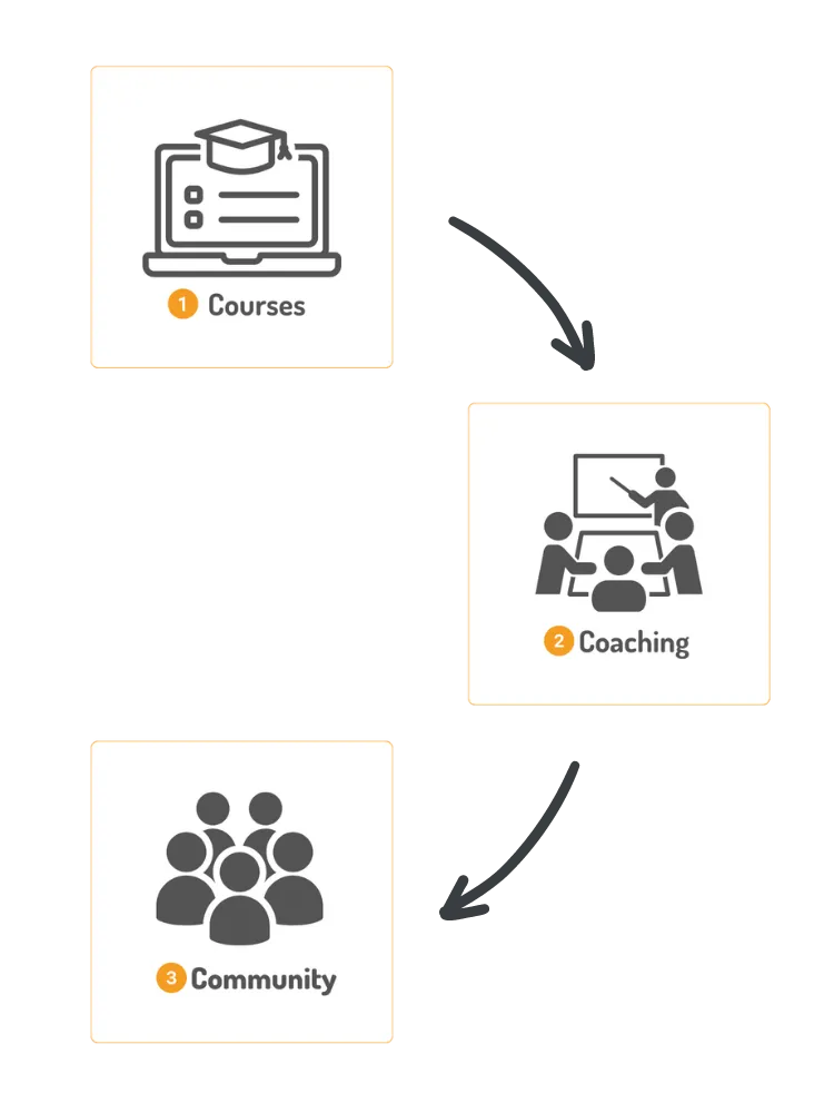 First, you will get access to courses, content and curriculums that will teach you what you need to do to achieve your goals.